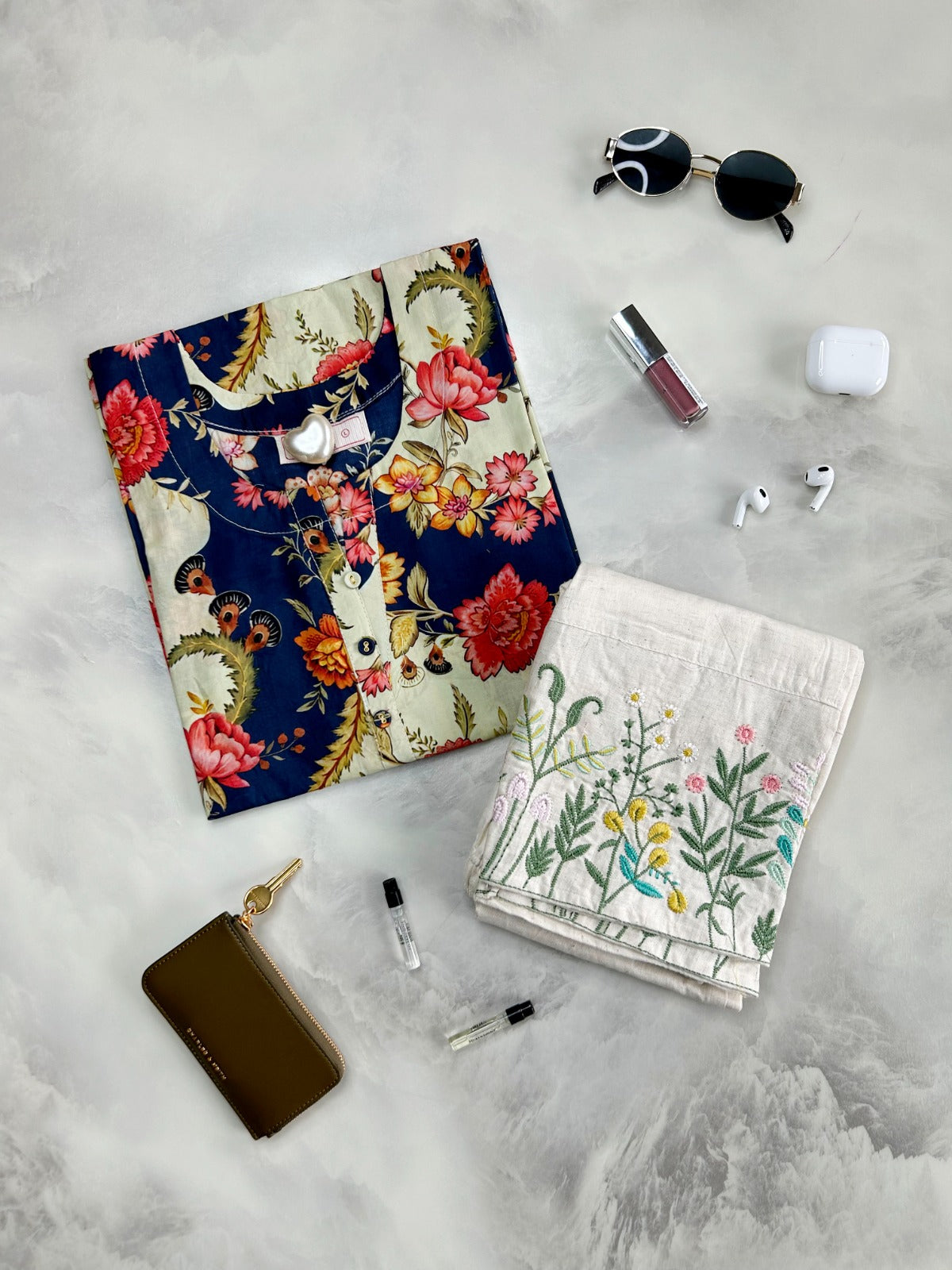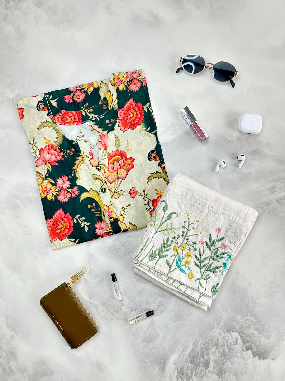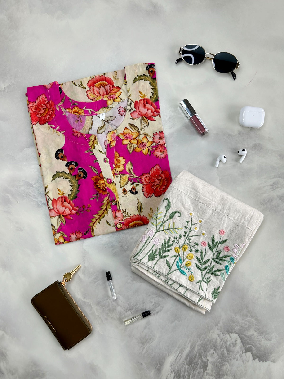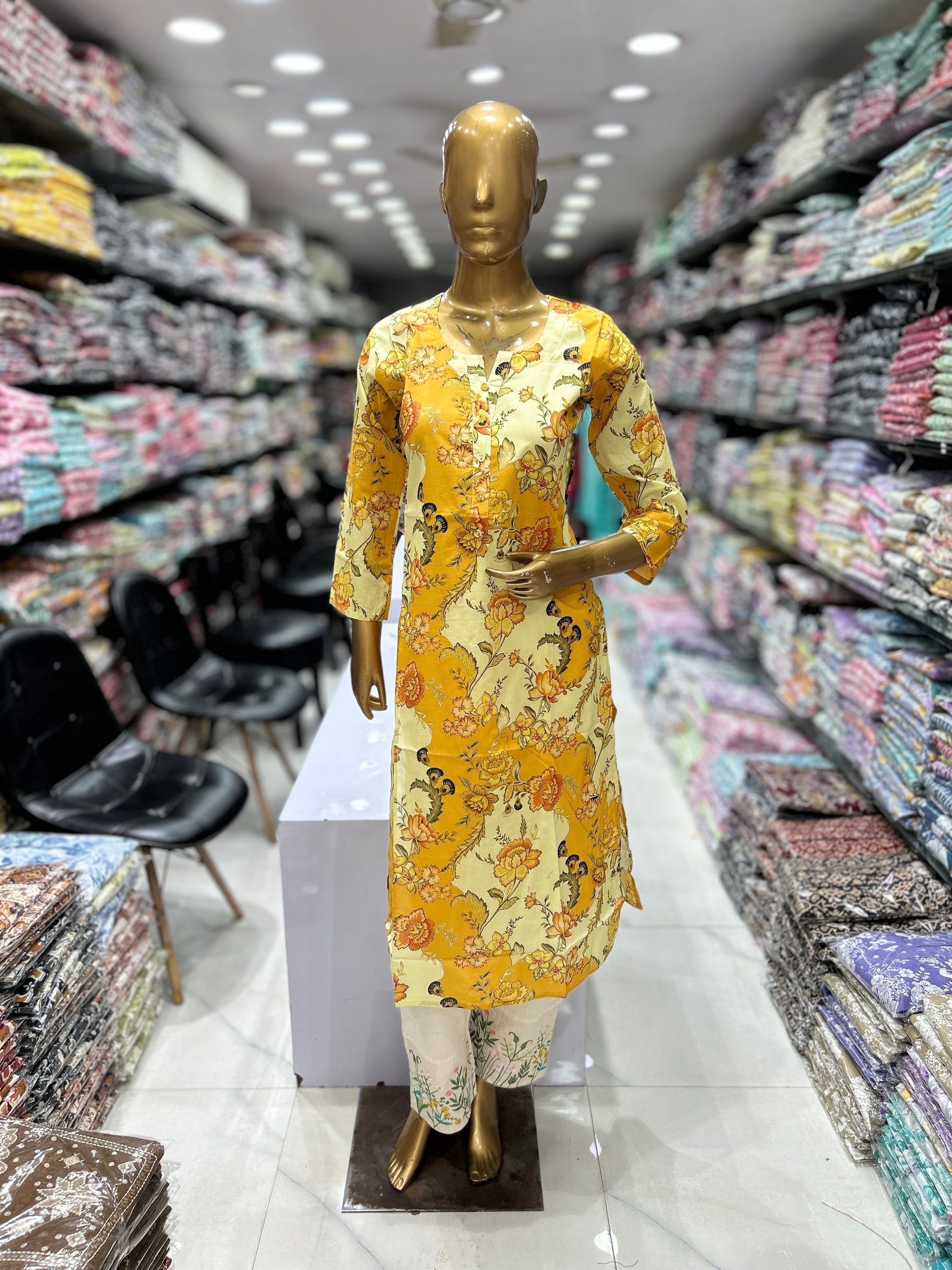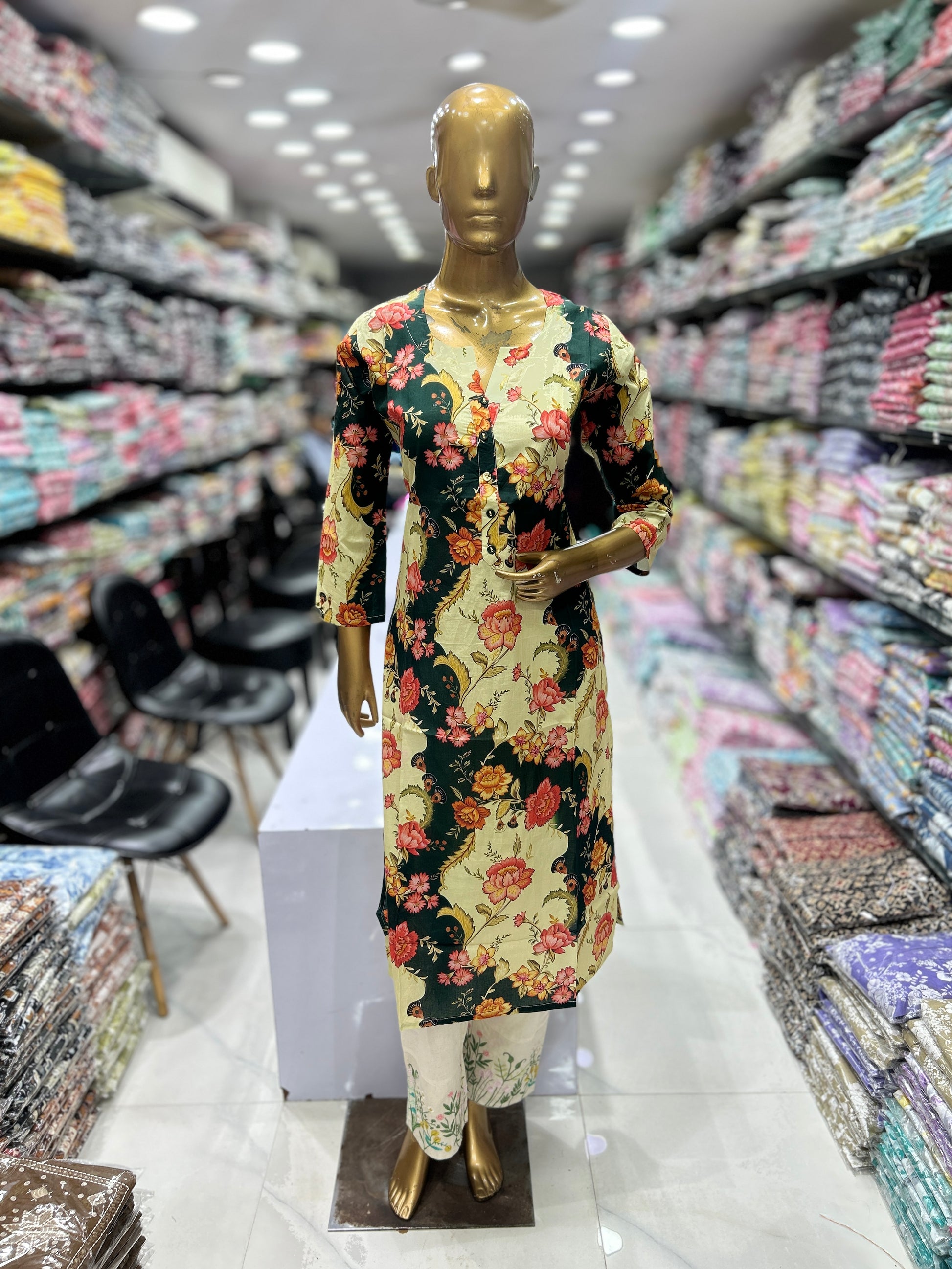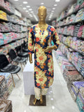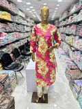Printed Straight Cotton Kurta With Embroidery Pant